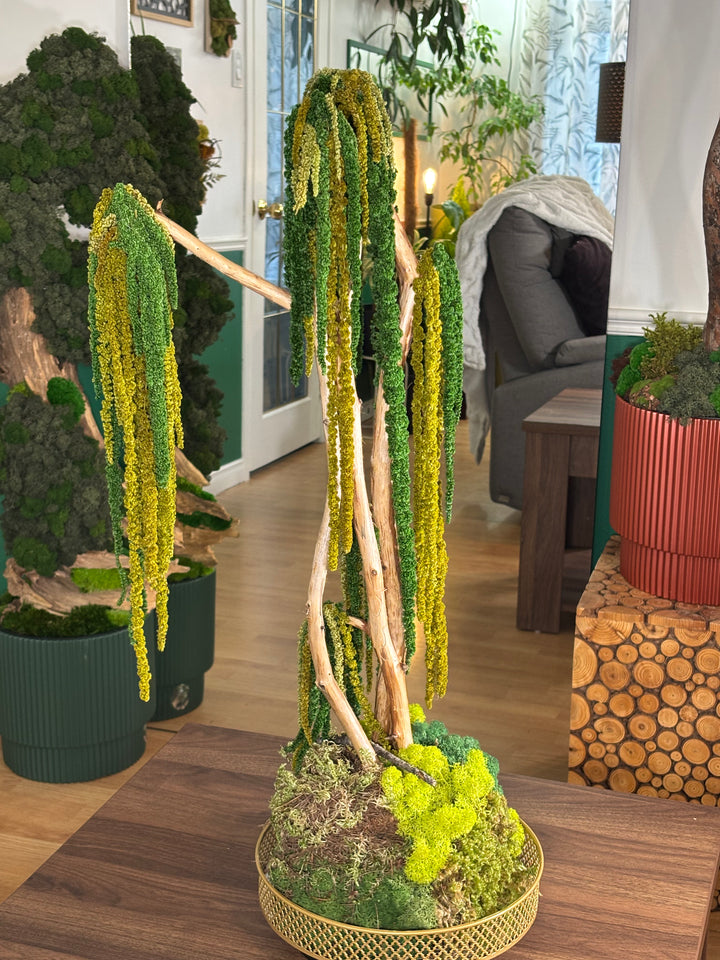 Connectez-vous à la nature grâce à ce bonsaï de mousse et/ou amarante préservée. Un élément de biophilie élégant pour favoriser le bien-être et la créativité au travail ou à la maison. Immergez-vous dans la verdure avec cette composition artistique. Un écrin de végétation à offrir ou à s'offrir pour une touche de bien-être au quotidien.